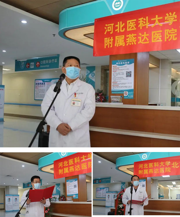 “今天,河北燕達(dá)醫(yī)院口腔科開科、北京口腔專家工作站正式成立”,11:18分,隨著主持人劉培宗主任擲地有聲的宣布,儀式正式開啟。口腔科主任張華首先上臺致辭,“我們可以看到,口腔科環(huán)境發(fā)生了巨大變化,專家團(tuán)隊(duì)已經(jīng)組建完成,這兩項(xiàng)改變賦予了口腔科重新開科的含義。”,張華主任在講話中重點(diǎn)介紹了北京口腔專家工作站專家團(tuán)隊(duì),并表示未來口腔科將每日開放專家號源,提高醫(yī)療質(zhì)量,服務(wù)廣大患者。